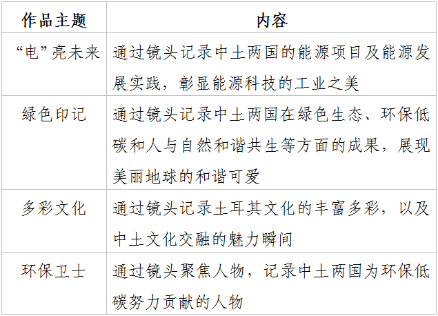 “來吧!碳想家”中土青年攝影大賽系“電亮中土,碳?jí)粑磥怼毕盗锌缥幕顒?dòng)之一。系列活動(dòng)共分為三大板塊:11月初舉辦的中土青年攝影大賽,將于11月中旬舉辦的“來吧!追光者”中土攝影作品云展播活動(dòng),以及12月上旬的攝影大賽頒獎(jiǎng)儀式暨“電亮中土,碳?jí)粑磥怼眹?guó)家電投云開放日活動(dòng),活動(dòng)旨在展現(xiàn)中土兩國(guó)綠色發(fā)展成就,講述中土文化交融故事,增強(qiáng)中土兩國(guó)Z世代友好交流。