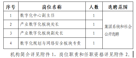 為推進(jìn)集團(tuán)公司“2035一流戰(zhàn)略”落地和國有資本投資公司改革,加快推動(dòng)集團(tuán)總部職能轉(zhuǎn)型,相繼組建成立國家電投財(cái)務(wù)共享服務(wù)中心(簡稱“財(cái)務(wù)共享中心”)和國家電投數(shù)字化管理中心(簡稱“數(shù)字化中心”)。財(cái)務(wù)共享中心和數(shù)字化中心是集團(tuán)公司推進(jìn)管理數(shù)字化、集約化,提升管理效率和質(zhì)量的服務(wù)保障中心,是建設(shè)世界一流清潔能源企業(yè)的重要支撐機(jī)構(gòu)。根據(jù)工作需要,公開選聘以下人員。