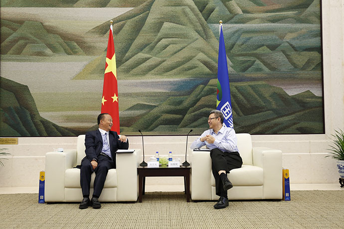 9月13日,國(guó)家電投董事長(zhǎng)、黨組書記錢智民在集團(tuán)公司總部會(huì)見通威集團(tuán)董事局主席劉漢元。