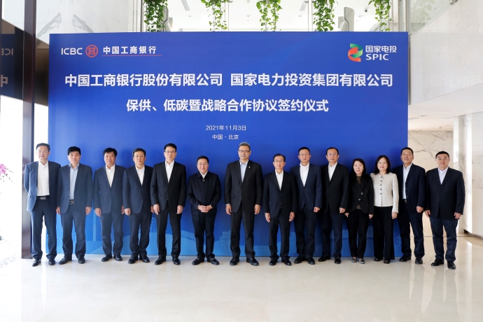 11月3日,在國(guó)家電投董事長(zhǎng)、黨組書記錢智民,中國(guó)工商銀行黨委書記、董事長(zhǎng)陳四清的共同見證下,國(guó)家電投董事、總經(jīng)理、黨組副書記江毅與工商銀行黨委副書記、行長(zhǎng)廖林代表雙方簽署《全面戰(zhàn)略合作協(xié)議》。國(guó)家電投總會(huì)計(jì)師、黨組成員陳西與工商銀行黨委委員、副行長(zhǎng)徐守本代表雙方簽署《能源保供專項(xiàng)合作協(xié)議》、《聚焦"碳達(dá)峰、碳中和"目標(biāo),綠色金融助推綠色智慧能源高質(zhì)量發(fā)展合作協(xié)議》和《產(chǎn)業(yè)鏈金融戰(zhàn)略合作協(xié)議》。