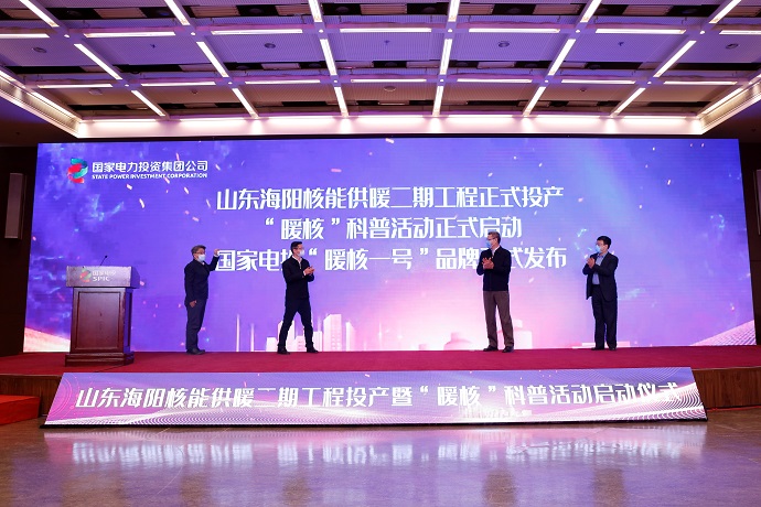11月15日,國(guó)家電投和中國(guó)核電發(fā)展中心在京聯(lián)合舉辦山東海陽(yáng)核能供暖二期工程投產(chǎn)暨“暖核”科普活動(dòng)啟動(dòng)儀式,發(fā)布國(guó)家電投“暖核一號(hào)”核能供熱品牌。國(guó)家能源局黨組成員、副局長(zhǎng)余兵,國(guó)際原子能機(jī)構(gòu)副總干事劉華,國(guó)家電投董事長(zhǎng)、黨組書(shū)記錢(qián)智民,中國(guó)能源研究會(huì)理事長(zhǎng)史玉波,山東省能源局黨組書(shū)記、局長(zhǎng)欒健現(xiàn)場(chǎng)或視頻出席會(huì)議并講話(huà)。來(lái)自國(guó)務(wù)院辦公廳、國(guó)家發(fā)改委、生態(tài)環(huán)境部、國(guó)家能源局、國(guó)防科工局等相關(guān)部委以及地方政府、行業(yè)協(xié)會(huì)、能源企業(yè)有關(guān)領(lǐng)導(dǎo)參加會(huì)議。