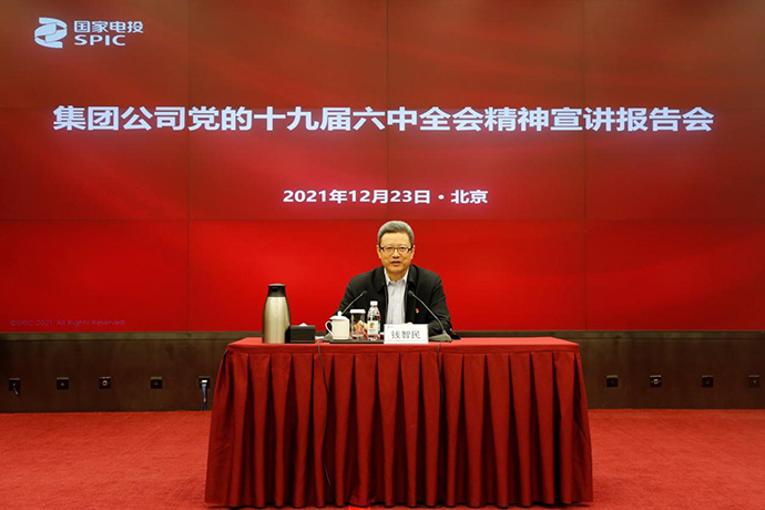 12月23日,國(guó)家電投召開黨的十九屆六中全會(huì)精神宣講報(bào)告會(huì)。國(guó)家電投黨組書記、董事長(zhǎng)錢智民宣講黨的十九屆六中全會(huì)精神,闡釋《中共中央關(guān)于黨的百年奮斗重大成就和歷史經(jīng)驗(yàn)的決議》的重大意義、主要內(nèi)容,結(jié)合國(guó)家電投實(shí)際談學(xué)習(xí)體會(huì)與思考,強(qiáng)調(diào)要積極應(yīng)變、主動(dòng)謀變、引領(lǐng)改變,做好"四個(gè)轉(zhuǎn)型",以"新能源+"為核心,推動(dòng)"2035一流戰(zhàn)略"進(jìn)入更高質(zhì)量的發(fā)展階段。