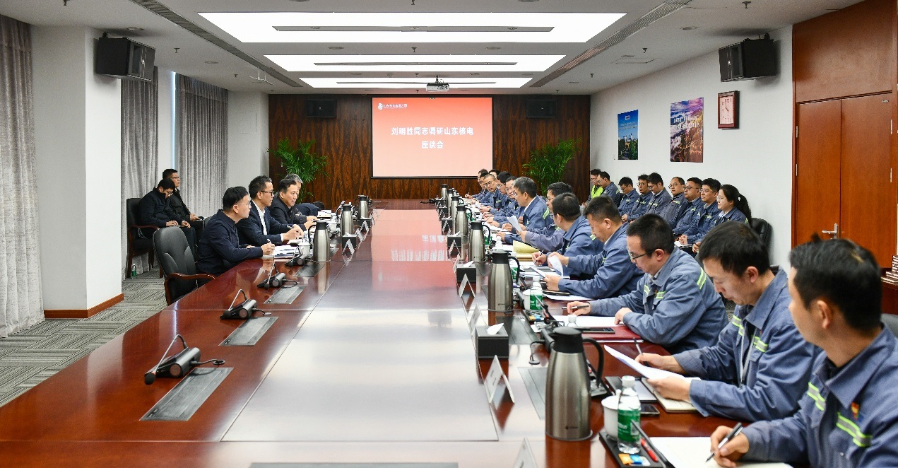 在山東核電,劉明勝實地調(diào)研海陽核電3號機組調(diào)試和5號機組建設現(xiàn)場,聽取企業(yè)關(guān)于重點工作完成情況及下一步工作思路的匯報。他指出,山東核電要明確一流業(yè)績目標、優(yōu)化一流指標體系、找準一流實施路徑,努力打造世界一流的核電站標桿,助力集團建設世界一流清潔能源企業(yè),為我國核電事業(yè)高質(zhì)量發(fā)展、推進強國建設、民族復興偉業(yè)作出新的更大貢獻。要始終堅持“安全第一,質(zhì)量第一”方針,全面落實業(yè)主主體責任,積極創(chuàng)新生產(chǎn)施工方式方法,加強經(jīng)驗反饋,嚴守安全質(zhì)量環(huán)保底線,確保核安全絕無一失。要加強黨建引領,充分發(fā)揮集團核電人才基地作用,做好精神傳承、作風傳承、能力傳承,為集團核電產(chǎn)業(yè)快速發(fā)展提供保障和支撐。