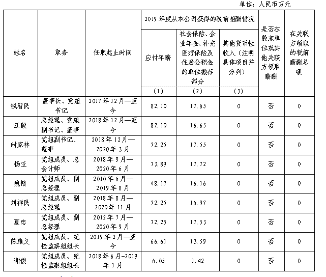 國家電力投資集團有限公司企業(yè)負責人2019年度薪酬情況
