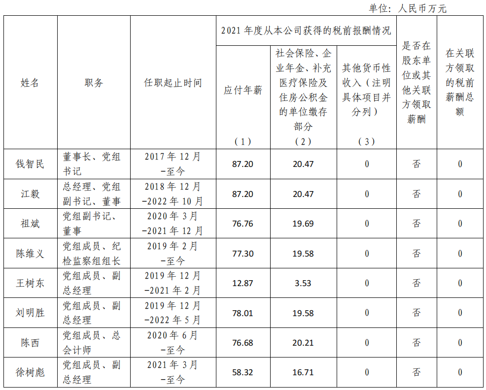 國(guó)家電力投資集團(tuán)有限公司企業(yè)負(fù)責(zé)人2021年度薪酬情況