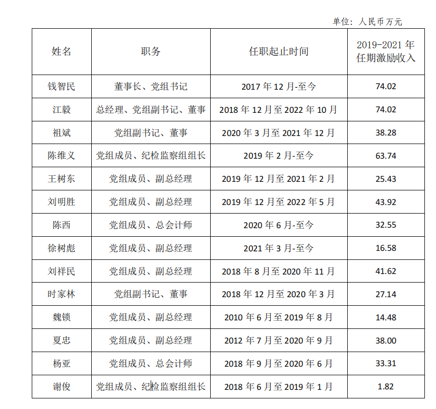 國家電力投資集團(tuán)公司企業(yè)負(fù)責(zé)人2019-2021年任期薪酬情況
