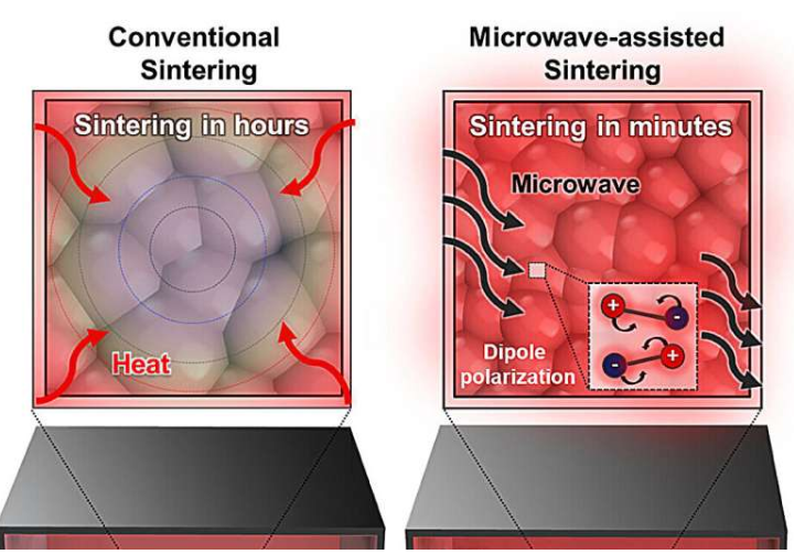 韓國(guó)科學(xué)技術(shù)院研究團(tuán)隊(duì)在《先進(jìn)材料》發(fā)表研究成果,開(kāi)發(fā)出超快微波燒結(jié)技術(shù),將固體氧化物電解池制造時(shí)間從數(shù)十小時(shí)縮短至70分鐘。這項(xiàng)創(chuàng)新使燒結(jié)溫度從1400℃降至1200℃,顯著降低了綠色氫能設(shè)備的能耗與生產(chǎn)成本。