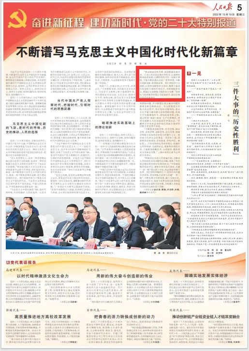 10月19日,《人民日報》“奮進新征程 建功新時代·黨的二十大特別報道”專版頭條刊發(fā)《不斷譜寫馬克思主義中國化時代化新篇章》。報道中,國家電力投資集團有限公司黨組成員、副總經(jīng)理盧洪早代表表示:“抓創(chuàng)新就是抓發(fā)展,謀創(chuàng)新就是謀未來。只有以科學(xué)的態(tài)度對待科學(xué)、以真理的精神追求真理,以滿腔熱忱對待一切新生事物,才能不斷拓展認識的廣度和深度,不斷實現(xiàn)新突破、取得新成果。我們將堅持守正創(chuàng)新,以國家戰(zhàn)略需求為導(dǎo)向,集聚力量進行原創(chuàng)性引領(lǐng)性科技攻關(guān),為保障能源安全、增強自主創(chuàng)新能力提供有力支撐!币韵聻閳蟮廊模