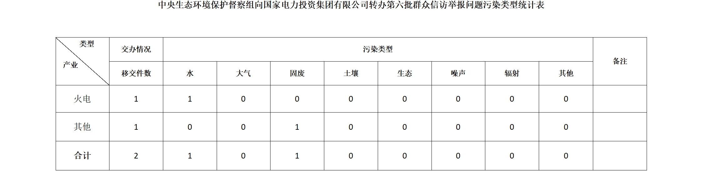 6月7日,中央第八生態(tài)環(huán)境保護(hù)督察組向國家電力投資集團(tuán)有限公司移交第六批群眾信訪舉報(bào)件2件,其中來電0件,來信2件。涉及水問題1個,固廢問題1個。所有舉報(bào)件辦理工作已第一時(shí)間進(jìn)入調(diào)查核實(shí)辦理程序,辦理情況將按照相關(guān)要求反饋督察組,并及時(shí)向社會公開。